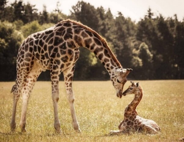 1.Новорожденные детеныши жирафа начинают свою жизнь падением с высоты 2 метра. Детеныши жирафа при рождении уже имеют рога. 2. Через час после рождения детеныш жирафа начинает ходить. 3. Жирафы умеют мычать, шипеть, рычать и свистеть. Весь этот набор звуков они используют для общения с сородичами. Ни один из этих звуков не доступен уху человека, так как общение происходит на частоте ниже 20 герц. 4. Мамы юных жирафов часто организуют детский сад: одна взрослая самка остается смотреть за детенышами, а все остальные дружной толпой идут добывать еду. 5. Кровь жирафов очень густая. Если бы не эта особенность, резкое опускание или поднимание животным головы было бы смертельным для его мозга. 6. Эти животные не боятся кровотечений, порезов и ссадин. Их кожа настолько прочна, что масаи делают из неё щиты, способные защитить их от нападения не только людей, но и различных хищников. 7. Отличились жирафы и в сфере науки. Разрабатывая скафандр, NASA ориентировалось на необычные особенности