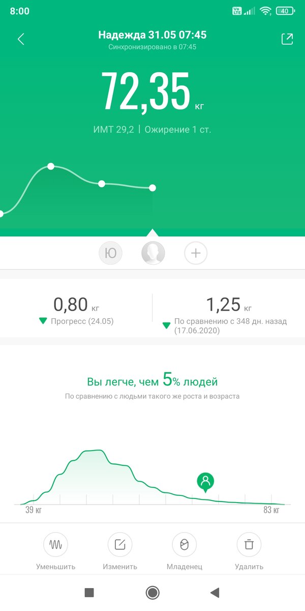 Вес - 72,35 (-0,8 кг) -4,2 кг
