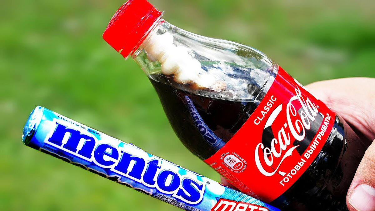 Не повторяйте этих экспериментов! Что бы выполнить этот эксперимент понадобятся: Кола и Ментос, либо сода! Мы выполняли этот эксперимент так; Взяли Колу, открыли ее, после чего немного отпили. Далее мы засыпали Соду (можно и ментос) и взболтали, подбросили и она взорвалась. Так же этот эксперимент можно украсить тем, что добавить зубную пасту в колу и размешать. Это сделает пену более густой и красочней!
