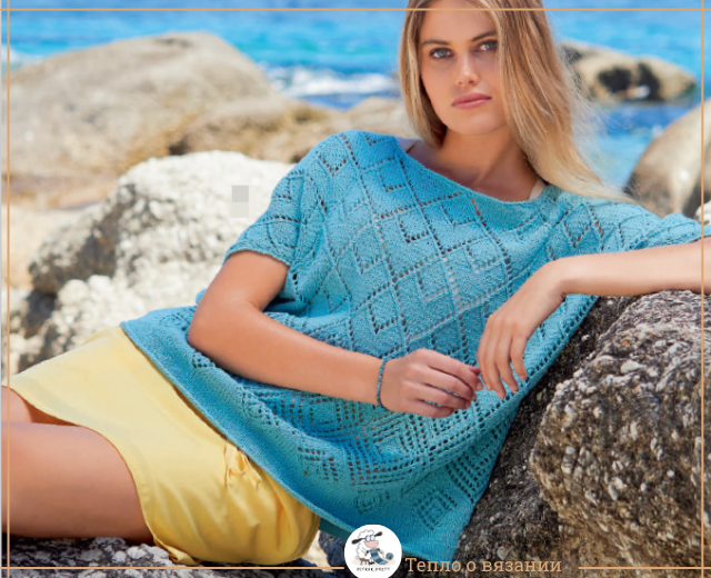 Следующий пуловер интересен тем, что он может быть как пуловером, так и очень интересным топом (если не вязать рукава).