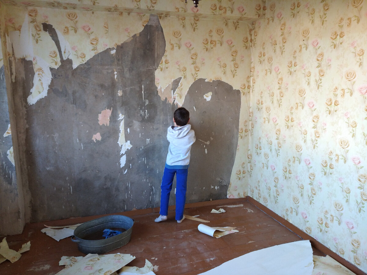 Приветствую вас друзья! В прошлой статье я писал, о том что стоит задача отремонтировать 4-х комнатную квартиру в старом «брежневском доме». Причем за минимальные деньги, но с приемлемым качеством. На первом этапе стояла задача освободить квартиру от всего ненужного. Решили обойтись своими силами, сын, супруга, а так же бабушка с дедушкой помогали счищать старые обои со стен, я демонтировал межкомнатные двери и дверные косяки. Никаких специальных средств при этом не применяли, просто шпатель и распрыскиватель с водой. Обои старые бумажные поэтому отходили довольно таки легко. Полы деревянные решили не трогать, так как они довольно крепкие, а у нас задача сделать красиво и уютно с наименьшими вложениями. Кстати о вложениях, они на первоначальном этапе составили – 2315 руб. В эту сумму вошли шпатели, перчатки, монтировка ( старая куда-то завалилась), мешки для мусора и прочая мелочевка. Одновременно думаем, что делать с батареями и у ищем поставщиков пластиковых окон. Пока за первую не
