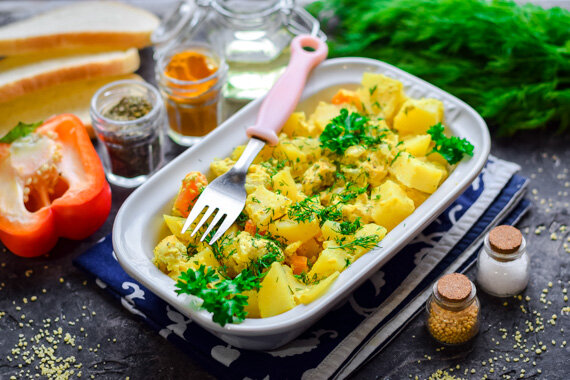 Картошка с курицей в сливках в духовке - быстрый и простой рецепт