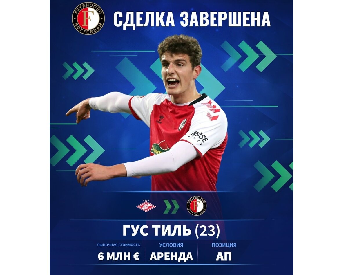 Московский "Спартак" официально подтвердил переход Гуса Тила в "Фейеноорд" на правах аренды. И лично я считаю данную сделку крайне удачной для "красно-белых". Давайте разберёмся почему: + "Спартак" подстраховался на случай, если "Фейеноорд" решит замариновать Тила на скамейке запасных. Ну, типа, как немецкий "Фрайбург" в прошлом сезоне. "Красно-белые" могут вернуть игрока, если он проведёт до 1 января 2022 года менее 50% матчей за роттердамский клуб. Это логично, ведь два сезона на скамейке подряд могут окончательно подорвать перспективы игрока. Да и трансферная стоимость упадёт почти до нуля. + Тил продлил контракт со «Спартаком» до 2024 года перед уходом в аренду. То-есть красно-белые всё-таки надеются, что Гуус возродит карьеру на родине и вернётся в команду окрепшим. А дальше его можно будет либо оставить в коллективе, либо выгодно продать. И вот в этом контексте, продление контракта было очень важно. Ведь предыдущее соглашение истекало летом 2023-го. Таким образом, к моменту возвр