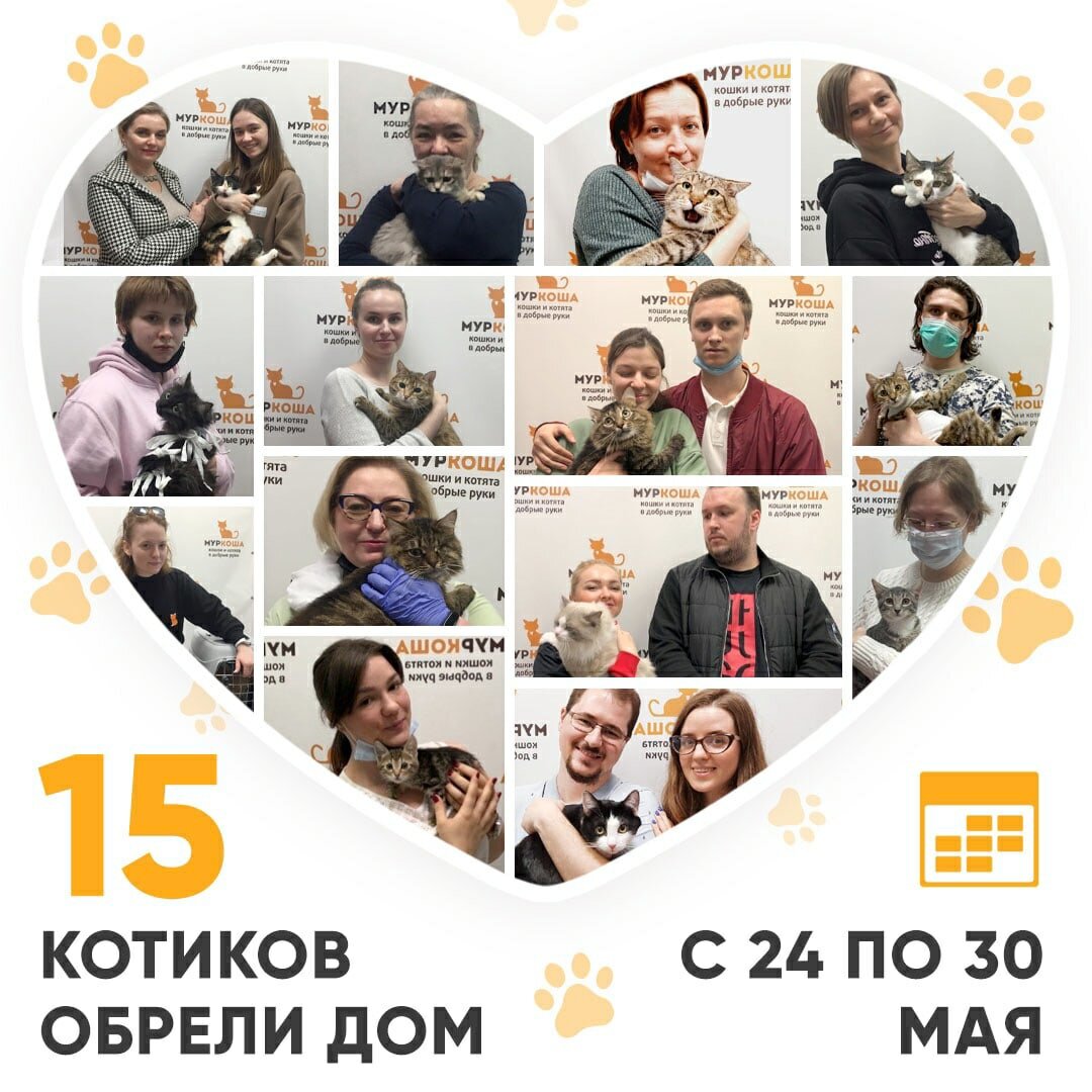 Друзья, по средам мы делимся с вами итогами работы нашего Adoption центра «Муркоша» за прошедшую неделю. 🥳 Итак, с 24 по 30 мая 2021 года домашними и любимыми стали 15 котиков!🥰😻🏡