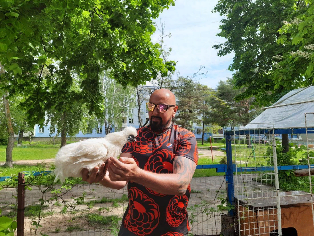 Помните, мы рассказывали про Михаила Беккера, который в обычном дворе создал такую красоту, что невозможно пройти мимо, не полюбовавшись оригинальными клумбами, буйством цветов, скульптурами и декором. Этой весной Михаил снова удивил – теперь в обычном городском дворе среди многоквартирных домов живут самые настоящие фазаны и черепахи. – Сделал каркас, — рассказывает Михаил. — Крыши сначала не было, и во время дождя нужно было бежать и забирать птиц домой. В этом году накрыл пленкой, соорудил своеобразный навес, задекорировал. Птицам нравится, свежий воздух, они даже очень довольны. У Миши живут не только фазаны, но и декоративные курочки, голуби. Прилетают на пиршество и воробьи. Вся эта пернатая братия поет песни на все лады, развлекая прохожих. — Они уживаются между собой, потому что здесь нет парных птиц, — объясняет Миша. — Куры, фазаны и голуби – все одного пола. Так делается в зоопарках, чтобы все сосуществовали вместе, было такое необычное ассорти из животных, чтобы можно было