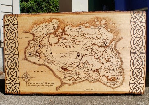 Пользователь Reddit поделился картой провинции Скайрим из вселенной The Elder Scrolls, которую его друг нанес на деревянную доску методом пирографии. На всю работу ушло около 30 часов. Размер доски составляет 13 на 23 дюйма, что равно примерно 0,33 на 0,58 метров. Пользователи приняли работу одобрительно. Некоторые предложили сделать похожие изделия и с другими провинциями, а также многие отметили отлично вписанные кельтские узоры по краям. Также автор предположил стоимость такого изделия, хоть и не смог назвать окончательную сумму.