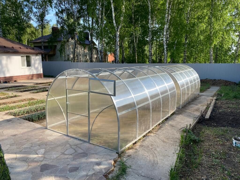 Индивидуальный проект дилера компании "Воля" в Уфе Друзья, в нашем каталоге есть теплица "Сигма" со сдвижными панелями. Вариант длины у этой теплицы 4,6,8,10м (длина кратна 2м), но по индивидуальной просьбе наш дилер сделал так, что длина обеих теплиц получилась ло 5и. Почему? Потому что у клиента осталось подготовленное место от старой теплицы именно такого размера, поэтому наш дилер пошёл навстречу и изменил длину конструкции в частном порядке. ⠀2. Торцы теплицы Так как 2 теплицы стоят очень близко друг к другу, клиент попросил сделать так, чтобы по 1 торцу в каждой теплицы были "глухими", то есть не было ни двери, ни форточки. ⠀ В стандартной комплектации этой теплицы 2 двери и 2 форточки в торцах теплицы, в данном варианте в теплицах получилось по 1 действующей двери и по 1 форточке. ⠀ Крыша у теплиц сдвижная, ширина сдвижной панели 1м как и расстояние между дугами в теплице, Наши клиенты планируют разделить посадки овощей: одна теплица будет оборудована под посадку томатов, вт