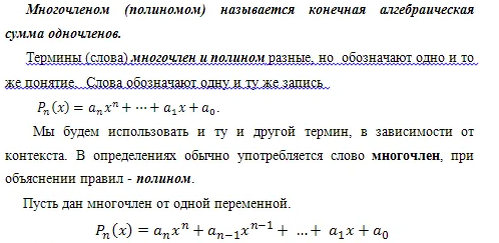 ПОЛИНОМЫ ОТ ОДНОЙ ПЕРЕМЕННОЙ