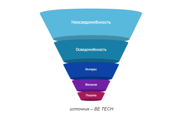 В онлайне решению купить конкретный продукт обычно предшествует так называемая «воронка продаж»: