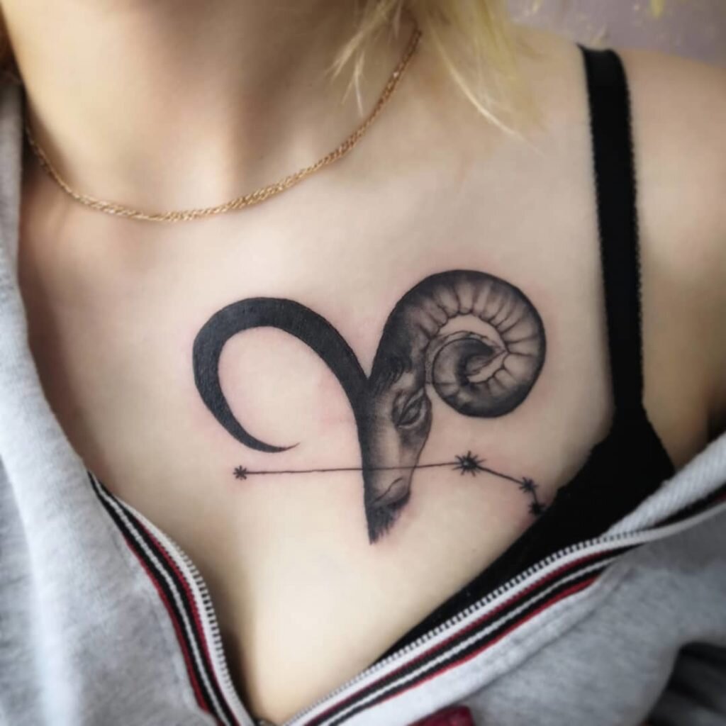 Люди, родившиеся под знаком зодиака Овен, отличаются оптимизмом, являются независимыми личностями, смелыми и щедрыми по природе. Как утверждают астрологи, овны являются обладателями лидерских качеств, они всегда стремятся к поставленной цели, ориентируясь только на собственное мнение. А чтобы окружающие поняли, с кем имеют дело, мужчины и женщины, родившиеся в период с 21 марта по 19 апреля, рассказывают о своей зодиакальной принадлежности посредством татуировки. Первым в зодиакальном круге знаком является Овен. Овны являются представителями стихии огня, а это говорит о многом. Они являются активными личностями, достаточно импульсивными, вспыльчивыми. Их главная черта – прямолинейность. Ни один овен не умолчит о своих мыслях и скажет оппоненту все, что он о нем думает. Именно представленные личностные качества и передают через тату. Для сильных овнов такая татуировка является символом храбрости и мужества, а вот для слабого духом человека защитой, оберегом. Татуировка в виде Овна озна
