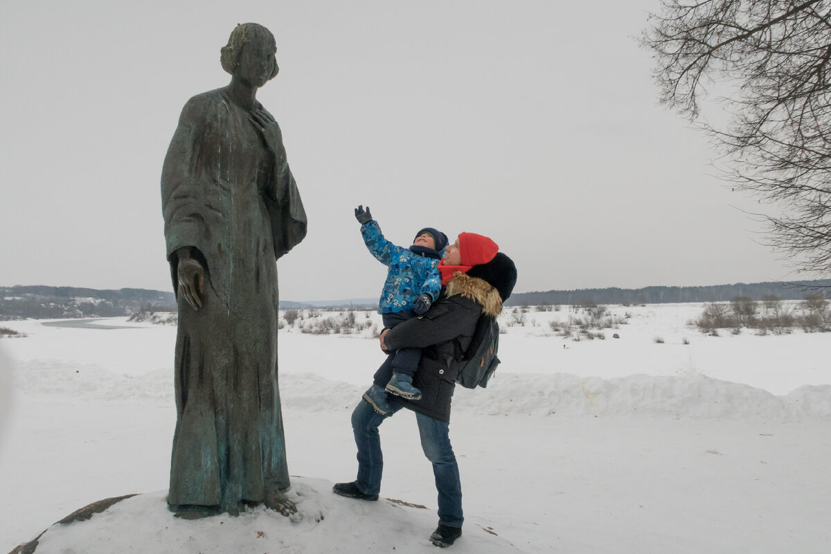 Заскулит в сторонке...» Я обожаю эту песню про Тарусу на стихи Николая Заболоцкого Вот каждое слово отзывается. Хочется одновременно и петь, и улыбаться, и плакать. И, конечно, в этот город ехать. Благодаря песне Таруса мне заочно нравилась. Но, оказавшись там впервые пару лет назад зимой, я не успела ничего понять. Было холодно, и моя подруга Оля сразу околела, а сын завёл свою вечную гундосную пластинку. Ну и, сфоткавшись с Мариной Цветаевой... ...мы поняли, что прогулка не пошла, да и уехали греться в водный комплекс загородного отеля «Яхонты», который там рядом. Однако песня покоя не давала. Снова и снова напоминала об этом городе. «А кому сегодня плакать в городе Тарусе?
