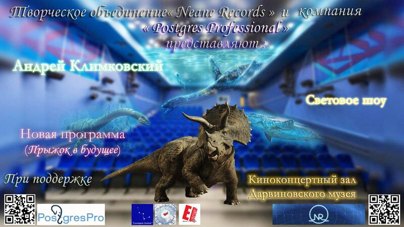 7 июня в Государственном Дарвиновском Музее при поддержке Генерального спонсора компании Postgres Professional пройдет уникальный концерт электронной музыки «Музыка Небесных Сфер. Прыжок в будущее». Свои лучшие мелодии на концерте представит композитор Андрей Климковский, хорошо известный любителям эмбиента и электроники. Компанию Postgres Professional и Андрея Климковского связывает длительное сотрудничество и общее стремление к прогрессу. Оно выражается очень по-разному. Компания Postgres Professional разрабатывает передовые технологии и системы управления базами данных, а Андрей Климковский пишет музыку, которая мотивирует людей стремиться в будущее. Эти космические мелодии звучат во многих медиа-продуктах компании, а выступление композитора стало украшением международной конференции по технологии баз данных, ежегодно проводимой компанией Postgres Professional.