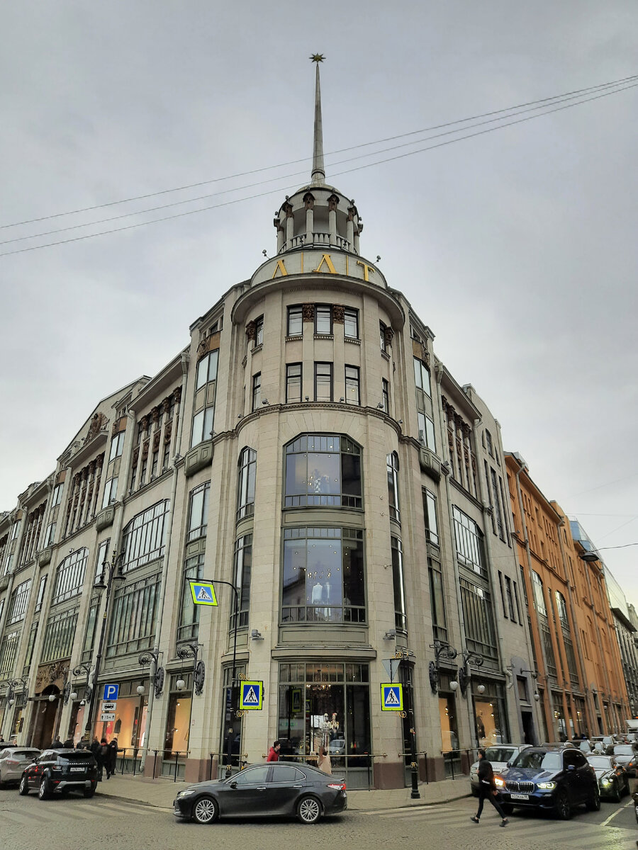 Всегда очень радостно, когда здание сохраняет свою историческую функцию на протяжении более чем ста лет, если это не пыточная, конечно. Так и получилось с торговым домом Гвардейского экономического общества, который мы все сейчас знаем как ДЛТ - Дом Ленинградской торговли. В галерее ниже можно видеть современные фото и старинные, начала 20го века. Изначально этот участок на Большой Конюшенной улице входил во владения Артемия Петрович Волынского, видного дипломата и государственного деятеля, который был женат на кузине Петра I. На месте 23 дома были так называемые Волковские номера (гостиница низкого пошиба), а на месте 21 - Волынский. Но в начале 20го века оба этих участка купило Гвардейское экономическое общество. Это было что-то вроде акционерного общества, а его члены и были офицеры гвардии и флота. Очевидно, что торговая деятельность приносила неплохие дивиденды и было решено построить собственный торговый дом. На учережденном конкурсе проектов постройки победил проект Эрнеста Ф