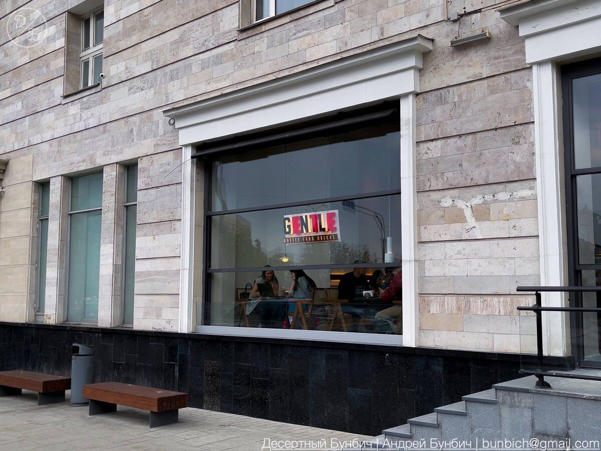 Честный обзор кафе с необычными десертами. Недавно был по делам в центре Москвы. Погода была неважная, начинал накрапывать дождь и, чтобы не промокнуть, я зашёл в первое попавшееся кафе. Это оказалось кафе под названием Gentle. Ещё с самого входа я увидел огромные витрины, заполненные десертами. Похоже я не зря зашёл сюда. Интерьер кафе светлый и, на мой взгляд, минималистичный. Если не считать полки с кофе и пары картин — стены пустые. Сейчас такой дизайн в моде, и большинство новых заведений оформлены в таком стиле. Но я не дизайнер, а кондитер, и мне в первую очередь интересно, что тут есть на десерт. А с десертами в Gentle оказалось все хорошо. По крайней мере все десерты на витрине выглядят очень аппетитно. У меня сначала даже глаза разбежались от такого изобилия. Но я собрался и сделал заказ. Что заказал Во всех кондитерских я всегда стараюсь попробовать «лимонную тарталетку с меренгой». Тут такой в меню не оказалось, поэтому взял аналог — слоеный куб с лимонным курдом и меренгой