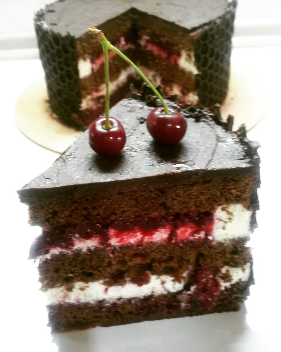 Этот рецепт будет разделён на две статьи. 1) Бисквит, 2) Вишнёвый мусс и вишнёвое пюре. И так начнём с приготовления бисквита. Я буду готовить тортик диаметром 16 см, а вы рассчитывайте сами! У всех формы разные... Для его приготовления нам понадобится: яйца 4 шт. (категории C1) сахар 140 гр. мука 115 гр. какао 25 гр. разрыхлитель для теста 10 гр. тёмный шоколад 25 гр. растительное масло 70 гр. цедра одного апельсина. Способ приготовления: 1. Первым делом мы разделяем белки и желтки, для дальнейшей работы они нам потребуются в отдельных емкостях. При использовании белков ВАЖНО помнить то, что их надо взбивать в сухой обезжиренной посуде, иначе белки будут не такими какие должны быть. 2. На плиту ставим кастрюлю или сатейник, наливаем воду и ставим тарелочку или что-то другое, где будете топить шоколад. !ВАЖНО!( вода не должна касаться той ёмкости в которой находится шоколад.), регулярно помешивая шоколад, займёмся маслом и цедрой их надо смешать и дать постоять минут 5-10, затем смеш
