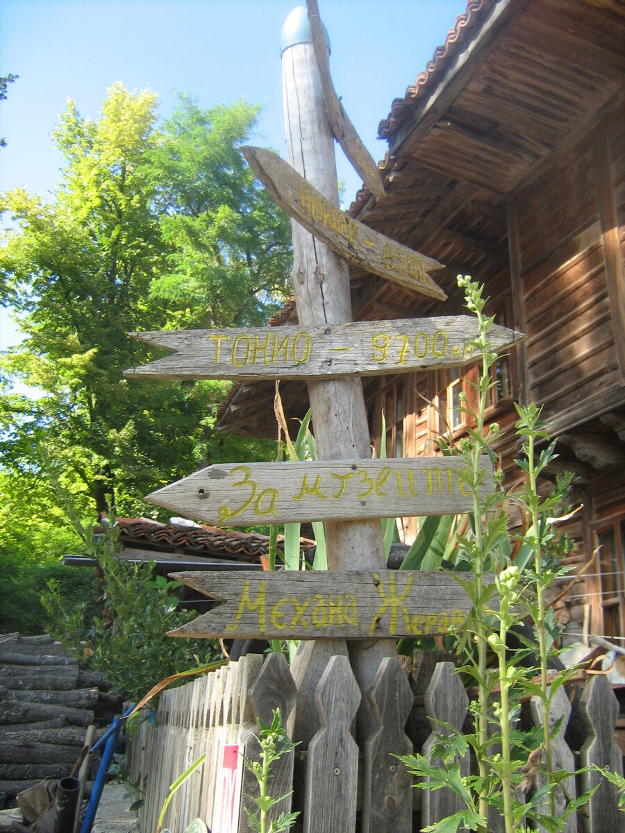 Жеравна – архитектурно-этнографический заповедник. Причем с удивительными особенностями климата – даже в Болгарии не так много мест с таким большим количество солнечных дней в году, как здесь. Впрочем, во многих странах есть подобные места — легендарные, всем известные и очень притягательные. И не удивительно, что в самом центре этой чудесной болгарской деревеньки можно увидеть такого рода указатели: Жеравна находится в 9400 км от Токио, 8200 км от Нью-Йорка, 3800 км от Лондона. От нашего села Черница до Жеравны чуть больше сорока километров по отличной дороге с завораживающими видами. Естественно, что наши новые друзья-болгары первым делом устроили нам экскурсию именно в Жеравну. Богата событиями история этой деревни… Летопись гласит, что неподалеку от деревни 26 июля 811 года состоялся бой между войсками императора Никифора І Геника и хана Крума. Император собрал большие силы против Болгарии, желая покорить эти земли, вместо этого потерял голову. 17 июля 1279 года в непосредствен
