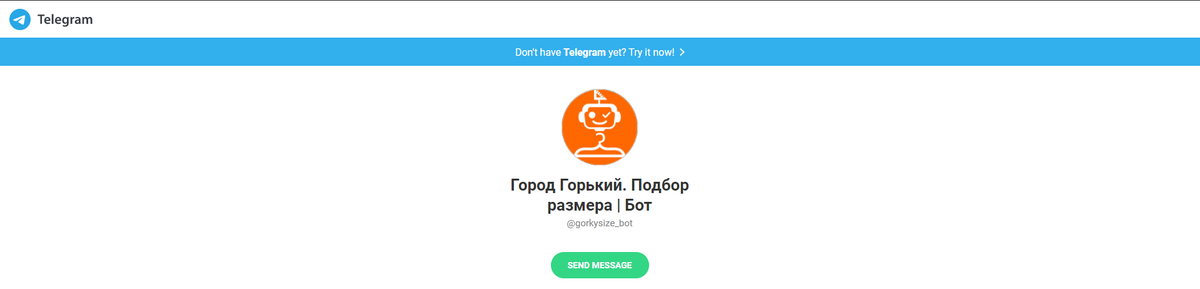 Что делать, если вы сомневаетесь в выборе размера понравившейся вещи, или вовсе не знаете, какой размер выбрать? Есть один крутой способ — воспользоваться нашим бесплатным ботом! Инструкция: Переходим по ссылке — https://t.me/gorkysize_bot Если вы перешли с устройства, вход с которого выполнен в телеграмм - вас сразу же перекинет на нашего бота! Запустив бота вы увидите вот такое сообщение: Для получения размера нам нужно нажать кнопку "Подобрать размер", которая находится под текстовым полем. Затем бот предложит нам выбрать пол: Далее, нам нужно выбрать, для какой одежды мы будем выбирать размер. Бот предназначен для одежды нашего бренда, поэтому позиции там такие. Однако, наши размеры не отличаются от российских, поэтому смело выбираем тип одежды, размер которого нужно узнать. Например, если вы хотите узнать размер свитшота — нажмите на "Худи", если для футболки — футболка, и так далее. Далее бот предложит нам выбрать тип измерения — по обхватам груди, талии и так далее, либо же с