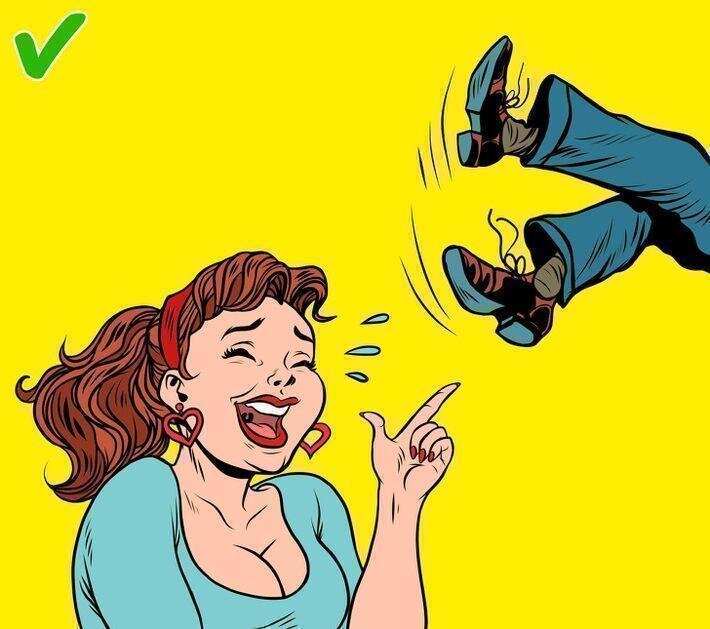 Речь идет, например, о чьем-то неожиданном или вполне ожидаемом падении — как в фильмах, когда персонаж поскальзывается на банане. На самом деле все просто, и реакция в виде неконтролируемого смеха — это банальная психологическая защита, механизм, который обычно формируется еще в далеком детском возрасте при встрече с чем-то неприятным. Основные признаки этой защиты — отрицание / искажение действительности и действие на бессознательном уровне. Видя, как другой человек ушибся, мы непроизвольно примеряем его боль на себя, пугаемся из-за этого и реагируем противоположной реакцией, чтобы не впасть в панику. Таким образом, можно сделать вывод, что чем «смешнее» вам в такой ситуации, тем сильнее вы на самом деле примерили боль другого человека на себя.