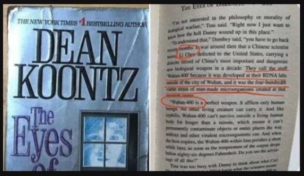 3) Третий сценарий включает в себя второй, но продолжается. Почему бы не предположить, что 23 года спустя некто с враждебными намерениями (враждебное государство?) Использовал сценарий романа Кунца как «план действий», применив его на практике, чтобы намеренно «посеять» эпидемию. ? В данном случае выбор Уханя был мотивирован именно указанными выше критериями, а именно направлением любых (и неизбежных) подозрений в том, что вирус был рекомбинирован по ДНК, с существующим там институтом (самый «темный» сценарий, вовсе не невозможный). .