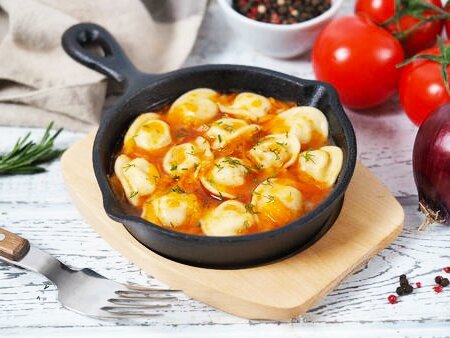 Для любителей этого вкусного блюда:) Ингридиенты: Приступаем к приготовлению: Пельмени можно использовать и покупные, я готовлю их сама. Пельмени обжариваем на разогретой сковороде с двух сторон, добавляем мелко нарезанный лук , натертую морковь, так же мелко нарезанный болгарский перец, натираем чеснок . Заливаем это всё томатным соком и посыпаем натертым сыром и зеленью,наш ужин готов! Приятного аппетита,дорогие подписчики!!!