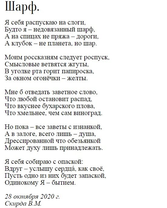 Будто я – недовязанный шарф,
