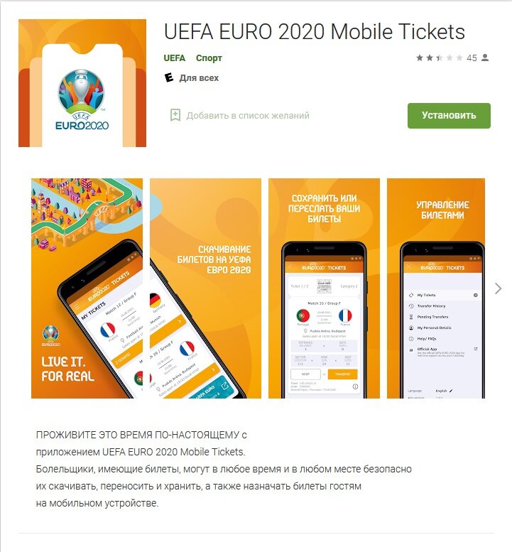 Всех приветствую!!! УЕФА начал рассылку билетов на Чемпионат Европы 2021 года. Все билеты поступают в специальную программу разработанную для данного чемпионата. Программа называется UEFA EURO 2020 mobile tickets!!! Билетное приложение для смартфонов можно скачать в Appstore and Google Play!!! После того как установите данное приложение и введёте электронный адрес по которому покупали билеты, приложение отправит на этот адрес проверочный код!!! Вводите его в программу UEFA EURO 2020 mobile tickets, далее нужно заполнить паспортные данные и тогда билеты автоматически подгружаются к вашему профилю. Эти билеты можно пересылать друзьям либо сохранять у себя в телефоне. Ограничений приложение никаких не выдают. Можно отправлять билеты на любую почту, но только один раз!!! Главное правильно заполнять данные электронной почты!!! В данный момент пока доступны билеты на все матчи в БАКУ!!! 3 групповых и 1 матч 1/4 финала. Вот так я отправил билет своему другу! Но пока он не зашёл в приложение