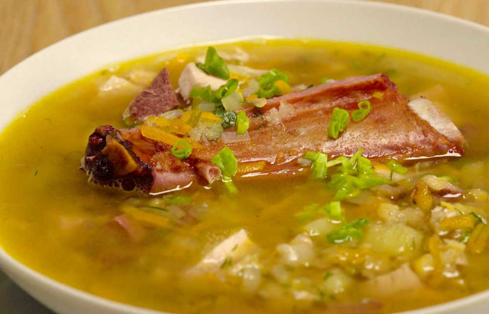 Гороховый суп в различных вариациях является традиционным блюдом многих стран. Гороховый суп можно варить с ветчиной или копчёной свиной грудинкой. Для приготовления нам понадобится: Начинаем готовить: 3. Через 1,5 – 2 часа, после начала варки мясо вынуть, а бульон процедить в суповую кастрюлю. 4. Картофель нарезать дольками. 5. Затем в суповую кастрюлю положить мясо (можно мясо нарезать небольшими кусами), добавить замоченный горох, нарезанный картофель, далее готовить в течение 30— 40 минут. 6. Морковь и лук нарезать, и обжарить на сковороде тщательно перемешивая. 7. За 10 минут до окончания варки горохового супа, обжарку, лавровый лист и приправу добавить в суповую кастрюлю. Гороховый суп подают на стол с гренками, приготовленными из белого хлеба, нарезанного кубиками. Приятного аппетита! Ещё больше рецептов здесь: Кулинарные рецепты