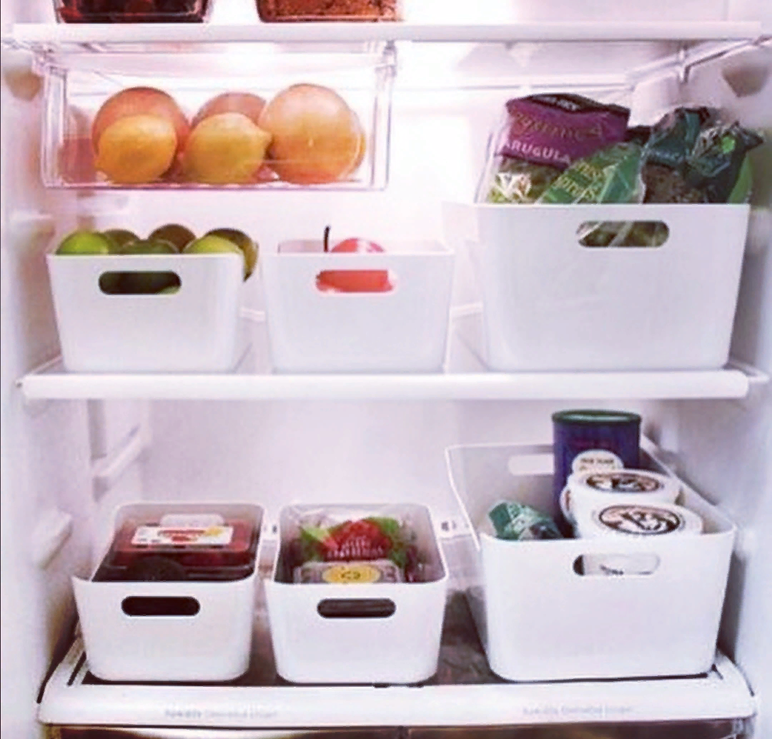 1. Начнем с того, что избавимся от тех продуктов, которые нужны вам в рационе. Например, подруга принесла к чаю вафли. Вы на диете. Выкинуть жалко. Скормите, прям не жалейте. А также проверим сроки годности, на запах, на цвет – избавляемся с чистой совестью особенно от того, что давно стоит. Моем холодильник, чтобы был как новенький. 2. Расставляем продукты обратно на полки, стараясь объединить по категориям: молочные, рыбные, мясные, соусы, фрукты, овощи. У каждого должно быть свое место. Как в гардеробе. Небольшие прозрачные ящички вам в помощь. Для экономии места контейнеры на магнитах, канцелярские зажимы(подвесить пакет