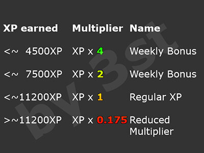 Если вы получите 7500 опыта за неделю, ваш недельный бонус упадёт до x1.