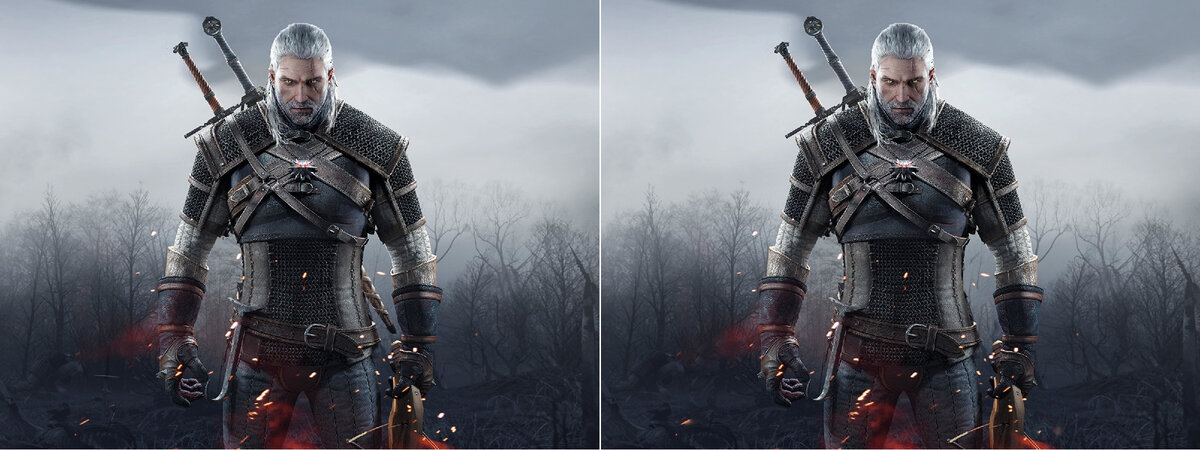 На изображении с Геральтом есть 4 различия найдите их. Разминка для ума.