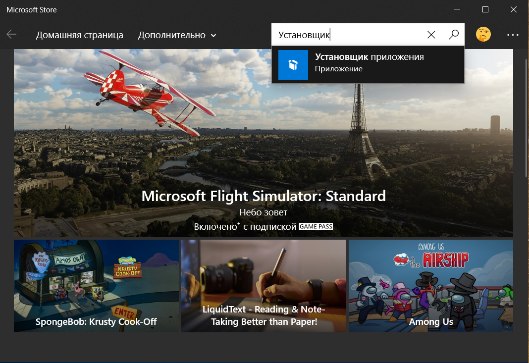 · Давайте сначала проверим «Установщик Приложений», открываем магазин приложений Windows и вписываем в поиске по магазину «Установщик», кликаем по выдаче поиска, как видим у меня «Установщик Приложений» присутствует, если у вас не установлен – то установите:
