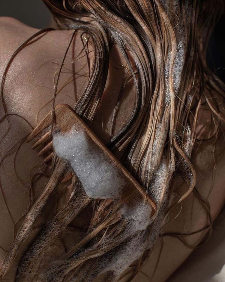 После каждого мытья обязательно используем бальзам/кондиционер. Наносим от уровня уха, избегая корней. Оставляем хотя бы на 5 мин.