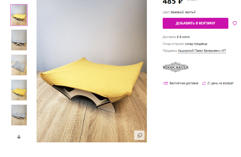 Рассказываю, как сделать гамак для собаки своими руками из простых материалов Увидела в интернет-магазине такой чудесный гамак для небольших пород, и решила сделать сама, пусть не такой же, но со сходными функциями. В моей книге по собаководству говорится, что лучшая лежанка для собак - это брезент, натянутый на широкую деревянную раму, что-то вроде гамака. На такой лежанке не страдает здоровье собаки, ей не жарко и не холодно. Сразу скажу, что полотно я вязала своими руками, но можно использовать просто плотную ткань, которую собака не порвет. Что мне понадобилось: 1. Ненужный столик из Фикс-Прайс как на фото, только черный 2. Хлопковый шнур для рукоделия фирмы Осттекс, который можно заказать на Вайлдберриз. Он гипоаллергенный и очень прочный, из таких шнуров обычно плетут коврики для детской комнаты. Использовала розовый и зеленый цвет. 3. Толстые спицы Описание работы: 1. Измерила ширину столика, набрала нужное количество петель и связала полотно нужной длины. 2. Связала 6 шнурков,