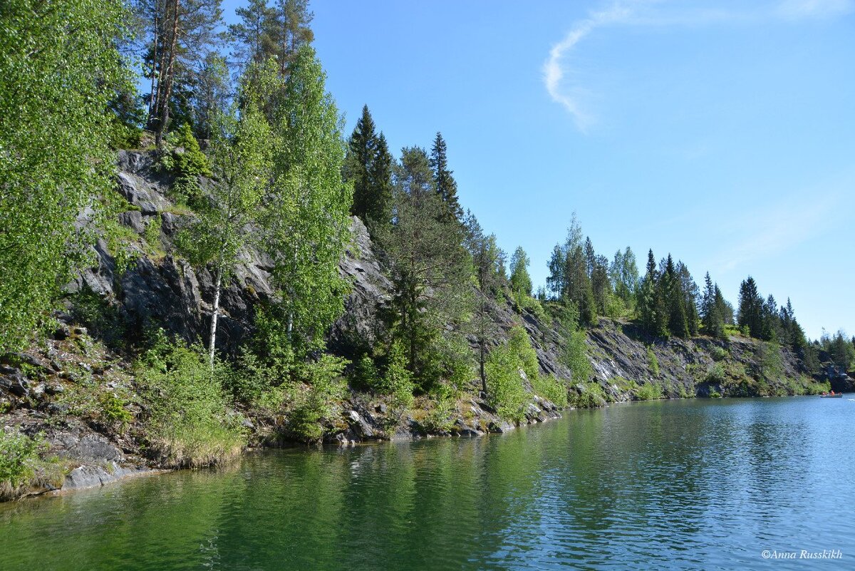 Впервые фотографии горного парка Рускеала, что в Карелии, я увидела несколько лет назад. Очень захотелось туда попасть, но как-то все не складывалось. В прошлом году, многие мои знакомые, после того как закрыли границы, рванули именно в Карелию. И лента в Фейсбуке запестрела видами из горного парка. Но опять не сложилось, хотя попытки были сделаны. Правда вместо Рускеала мы отправились в Выборг. И вот... Мы наконец добрались до Сортавала, а оттуда и до Рускеала. И вот тут нас ждало разочарование. Нет... Это не значит, что парк нам не понравился. Мы провели в нем чудесных 6 часов. Но вот того восторга - "ВАУ" - какое испытали, рассматривая фотографии, не было. В общем, на фотографиях парк значительно интереснее и красивее, чем в реальности. Еще раз повторю - красиво, но не потрясающе. Да и к тому же, нечто похожее мы видели в парке Монрепо в прошлом году. Те же отвесные скалы, гроты, с одной лишь разницей. В парке Рускеала - мрамор. Посетить парк можно как самостоятельно, так