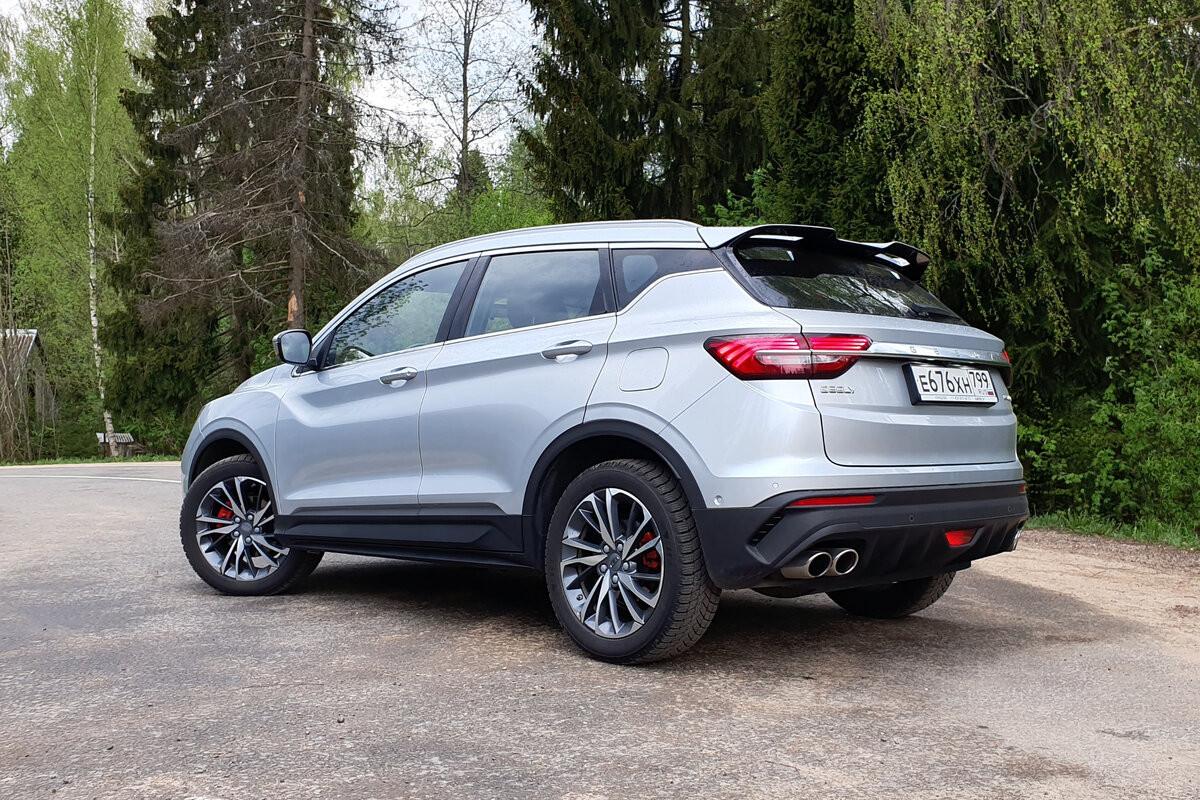 Внешность у машины яркая, можно просто поменять эмблему и смело выставлять в дилерском центре любого премиального бренда. Впрочем, это неудивительно, ведь в команде Geely трудятся специалисты Volvo, а они не умеют создавать плохие автомобили. Кроссовер построен на новой корпоративной платформе BMA с передней подвеской McPherson и полузависимой балкой сзади, которую позднее также получат компактные автомобили из линейки Volvo. Привод у кроссовера только на передние колеса.