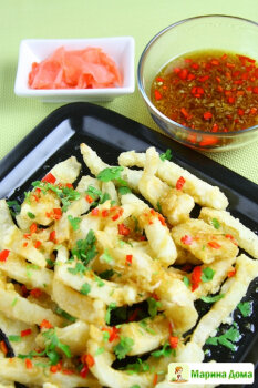 Это закуска понравится даже для тем людям, которые кальмары не признают и не очень любят. Нежное мясо кальмара под хрустящей корочкой нейтрально по вкусу, но острый соус создает настоящий взрыв вкуса. Это феерически вкусно! Состав: - растительное масло для фритюра