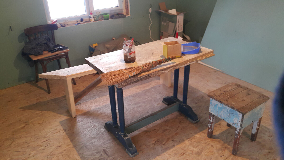 Еще год назад мы поехали вывезти мусор с нашего нового дома. Поскольку он у нас в эксплуатацию на тот момент введен не был, соответственно, договора на вывоз мусора не было, и мы решали вопрос просто. Мы мусор сортируем. Пластик, банки сдаем - у нас приемка рядом. Но что-то просто копим в гараже и вывозим на адрес нашей квартиры. Там-то мы платим за вывоз мусора. Вывозим обычно, когда на полную машину накопится. Так было и в этот раз. Подъехали к бакам, и муж увидел, что кто-то выбросил старый кухонный стол на интересном деревянном подстолье. Он его сразу решил забрать, но не затем, чтобы восстанавливать, просто ему какая-то рабочая поверхность была нужна на стройку. Сказал, что как свое отработает, просто уйдет на дрова, он же деревянный. У него только столешница была из ЛДСП. Видно, что старая, уже углы крошились. Так мы дали этому столу доработать до пенсии. Он нам верой и правдой помогал во время отделки дома. Но позже пришло решение, как ему можно дать вторую жизнь. Вторая жизнь