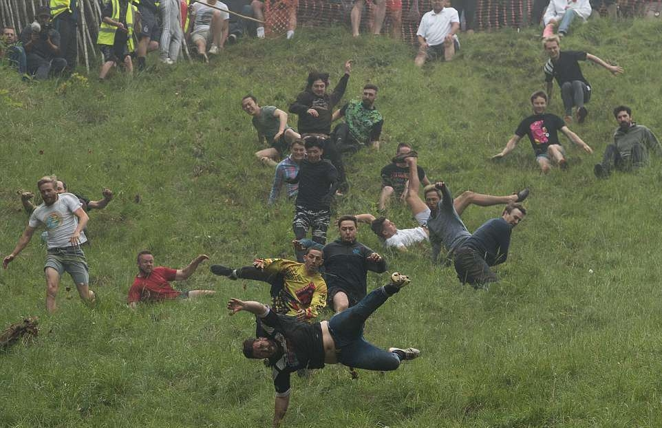 1. Сырная гонка Ежегодно весной в местечке Купер Хилл (Великобритания) проходит увлекательное мероприятие под названием Куперсхилдская сырная гонка. Это своеобразное спортивное состязание, суть которого заключается в крутом спуске с холма вслед за пятикилограммовой головкой сыра. Принять участие может любой желающий.