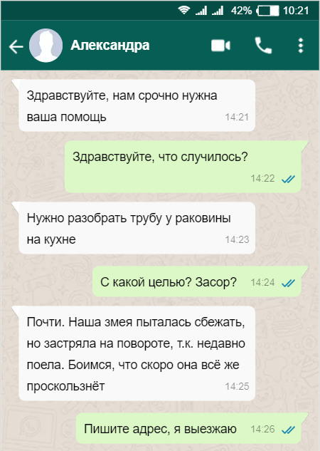 Но змеи всё же не самые типичные домоседы, поэтому переписка как раз про сытого путешественника