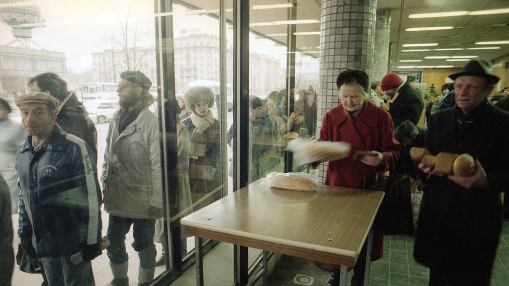 1) Очередь за хлебом в магазин "Хлеб" на проспекте Калинина (Новый Арбат)