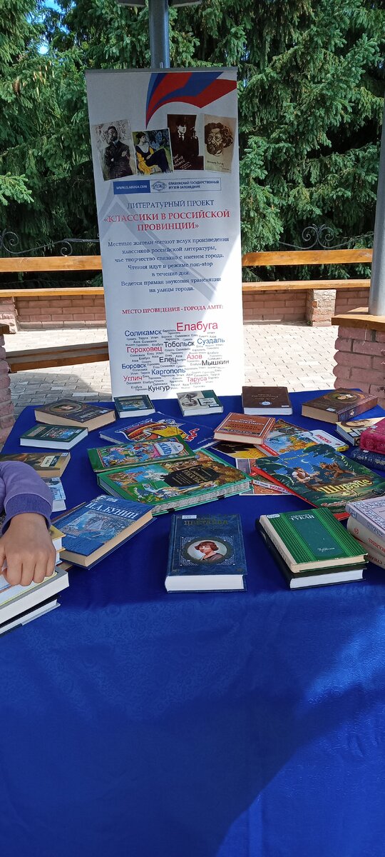 1 июня Елабужский государственный музей-заповедник в восьмой раз присоединился к литературному проекту Ассоциации малых туристических городов "Классики в российской провинции",который в этом году был посвящен году родных языков. В этот день елабужане и гости города могли прочитать свои любимые произведения писателей-классиков в Поэтической беседке Литературного музея М.И.Цветаевой и Библиотеки Серебряного века. В акции приняли участие более ста человек из Елабуги, Набережных Челнов, Казани, Москвы. Также была организована книжная выставка,включающая произведения А.С. Пушкина,посвященные детям.