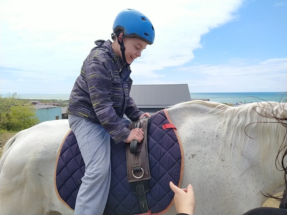 Для нас утро начинается с похода к педиатру, благо, еë домик находится прямо возле нашего. Миша и Ваня делают ингаляции и получают назначения на день. Вчера Ваню допустили только до иппотерапии. А Мише разрешили побывать у всех специалистов, кроме АФК. Позавчера в течении дня говорили с Ваней про лошадку. Предлагала сесть на лошадь вместе с ним или с инструктором. Сказала, что буду крепко его держать (хотя самой страшно)) Но Бус был не преклонен. По расписанию Ванино занятие в 9.30, а Мишино с 16.30 до 17 часов по вторникам, четвергам и субботам. Я решила поменять Мишу и Ваню местами. То есть Мише покататься с утра, а Ване вечером. Думала, что Ваня посмотрит, как катается Миша, воодушевится его примером и согласится хотя бы посидеть на лошади. Пришли к конюшням. Миша первый раз садился на лошадь и немного нервничал. Инструктора у него были совсем молоденькие девочки. Хотя в расписании стояла женщина лет сорока. Хотела, чтобы Миша попал именно к ней. Но когда увидела, что та