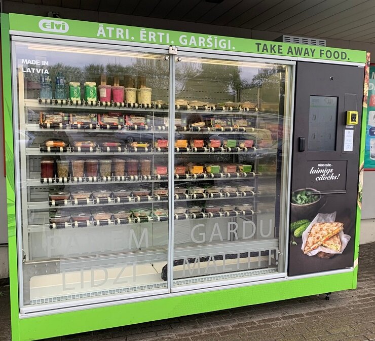 Латвийская розничная сеть продуктовых магазинов Elvi приступила к развитию собственной сети микромаркетов по продаже готовой еды. Ассортимент торговых автоматов Elvi состоит из обеденных комплектов, супов, салатов и бутербродов. В проект ритейлер инвестировал свыше €80 000. Первые три микромаркета с готовой едой открылись в Риге, Дрейлини и Саласпилсе. Оборудование для микромаркетов разработали латвийские инженеры из компании Astore. Все автоматы были установлены в строительных магазинах Kurši. При востребованности данного формата торговли розничная сеть может увеличить количество автоматов самообслуживания в торговых точках Kurši. Автоматы по продаже готовой еды Elvi могут быть размещаться как на улице, так и в помещении. Оплатить блюда пользователь микромаркета может банковской картой. Для удобства пользования автомат оборудован микроволновой печью для разогрева приобретенной еды. Компания планирует в ближайшем будущем установить устройства самообслуживания на производственных предпр