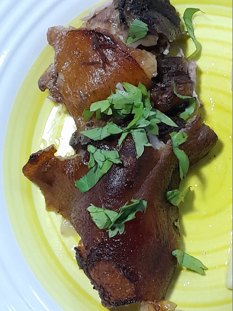 Всем привет. Приветствую Вас дорогие гости моего кулинарного канала. Хочу Вам рассказать рецепт который я выведала у хорошего знакомого, повара из одного известного ресторана нашего города. Любители рульки оценят этот рецепт. Получается вкусная,сочная , с хрустящей корочкой . Все очень просто, без особых хлопот! Нам понадобится: Рулька- 1 шт. У меня очень крупная рулька. Пиво - 2,5 литра Специи, лук, чеснок ,лавровый лист, соль. В большую кастрюлю кладем рульку, все специи ,лук не чистим. Заливаем пивом и ставим варится на огонь. Варим на маленьком огне рульку 2 часа. Аромат по квартире,можно захлебнутся слюной) Далее рульку достаем, пока она остывает нагреваем духовку до Т 180 С. Как рулька остынет. Пожеланию можно отделить от косточки и запечь или запечь с косточкой. Я отделяю от косточки,укладываю на противень смазанный растительным маслом и посыпаю чесноком. Запекаю 1 час .В течении часа,я через каждые 10 минут, поливаю рульку оставшимся пивным бульоном . Шкурка рульки