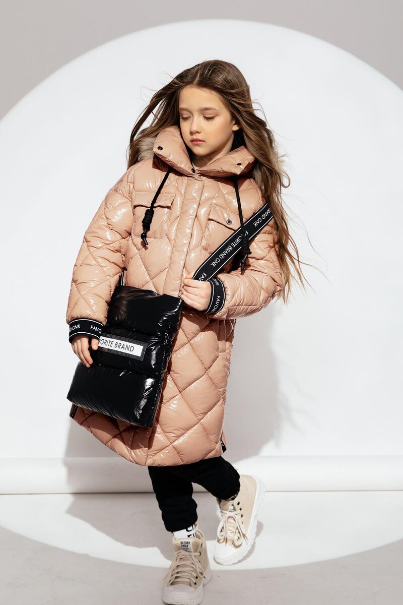 Зимняя коллекция верхней одежды для детей G’n’K представлена разноплановыми вещами: от комбинезонов и костюмов до пальто и удлинённых курток. Пальто для девочки ЗС-919 на рост 110–134 см выполнено из стильной ткани с лаковым блеском, имеет накладные карманы в трендовом рубашечном стиле и заметную фигурную стёжку ромбами. Эта вещь сразу привлекает внимание — как девочек, которые благодаря интернету отлично понимают, что сейчас в моде, так и родителей, заинтересованных в том, чтобы их дети одевались красиво и стильно. Крой пальто — рубашечный, что видно по накладным карманам на груди и характерному плавному подолу со вставками из декоративной резинки в боковых швах. Рукава оканчиваются притачными манжетами, похожими на таковые у рубашки. Рубашечный стиль — тренд и во взрослой, и в подростковой моде, такие вещи отлично смотрятся на девочках любого телосложения, поэтому подойдут буквально всем. Пальто целиком стёгано выразительными ромбами, которые особенно заметны на модели цвета «мускатн