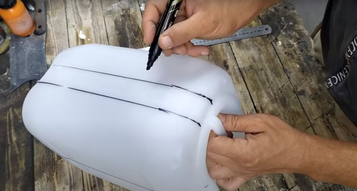 Друзья, я рад вас приветствовать на своем канале! Сегодня вам расскажу как я сделал неплохой ящичек из пластиковой канистры своими руками! Первым делом, сделал набросок на канистре по центру примерно 20см с 2-х сторон и на небольшой стороне нарисовал 2-е полосы. Дальше вырезаю по разметке. Теперь делаю стенки для отсеков. Один отсек будет большой и два поменьше. Также сделал ещё одну стеночку. Просверливаю отверстие в стенке и прикрепляю к ней другой отсек при помощи саморезов. Далее саморезами закрепляю стенки к канистре. Совершенно случайно у меня нашёлся кусочек полипропиленовой трубки который я закрепляю изолентой. Без синей изоленты конечно не куда, без нее идея будет не рабочей))))))) И теперь заполняю ящичек строй материалами и инструментом. на самом деле как показала практика, ящик получился очень удобный, пользуюсь им по сей день Друзья, я надеюсь вам понравилась данная статья, не забудьте поставить лайк, если не подписаны, подписаться, а так же пишите обязательно ваше мнение