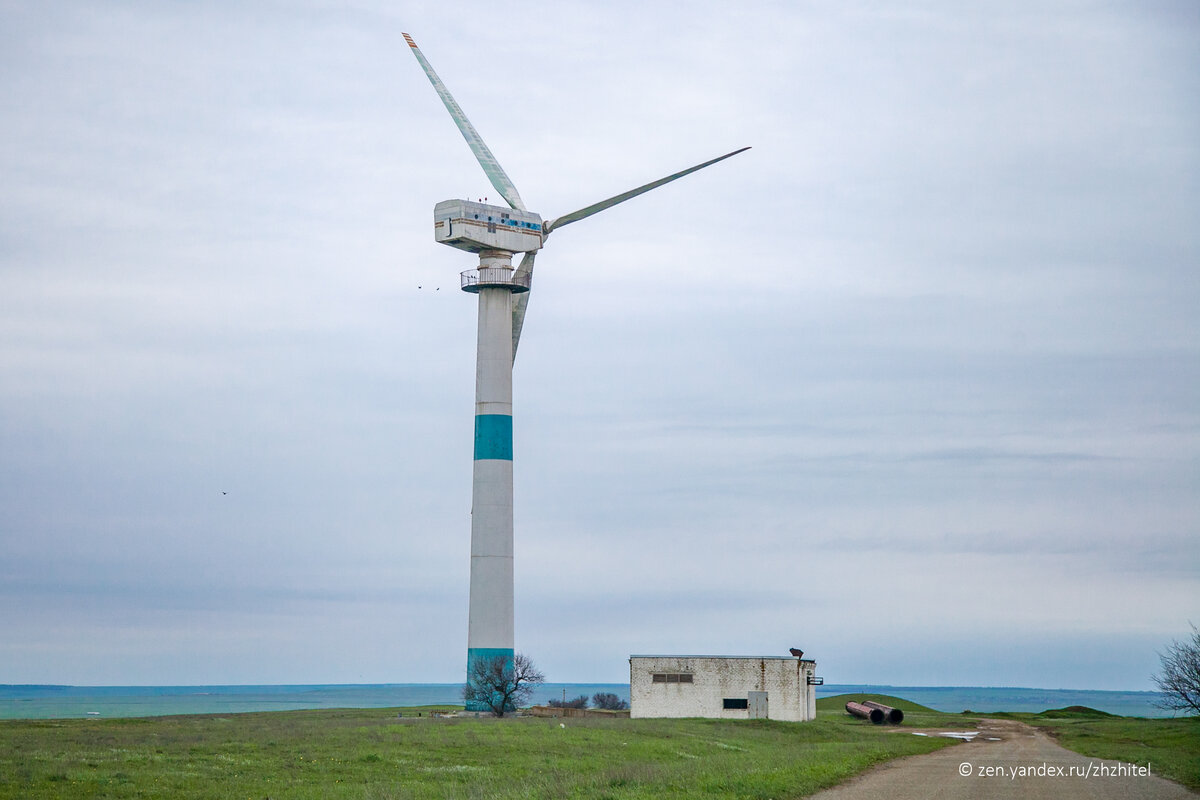 Посмотрите на фотографию с ветряком, которую я сделал в одной из недавних поездок. На берегу бирюзового моря стоит ветряк. Попробуйте угадать, где это снято? На самом деле, я слукавил. Никакого моря на снимке выше нет. И на этой фотографии с маяком тоже моря нет. Если честно, то тут и маяка нет, это остатки точно такого же ветряка, как и за ним, только без лопастей. Снимки эти сделаны в Калмыкии. Вместо моря на снимках бескрайние степи. Иногда они действительно похожи на море не только тем, что простираются до горизонта и колышатся на ветру, но и цветом. Я много раз встречал сравнение степи с морем, но тут у меня получились реально морские фотографии.