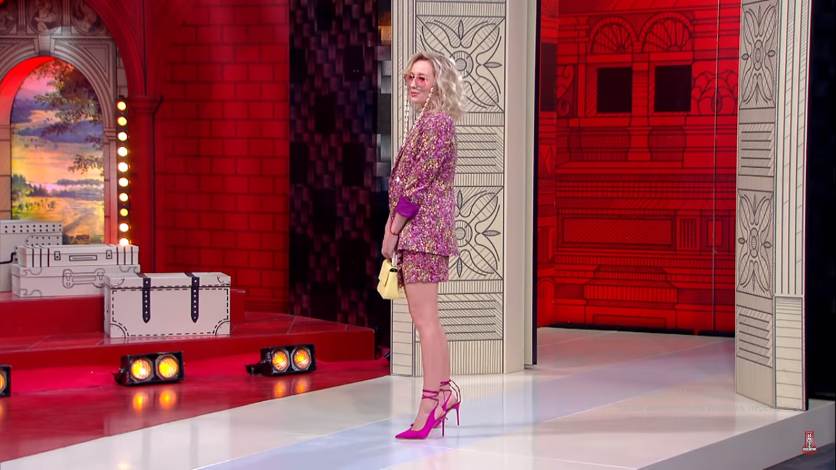 Как спасти отношения Анны и Константина? Получится ли у Анны сменить свой образ и переодеться из спортивных вещей обратно в платья, юбки, туфли на каблучке? Для того, чтобы решить эти проблемы молодая пара пришли на шоу "Модный приговор", где Анну поддерживал не только муж, но и все пятеро детишек. Итак, первый образ Анны. И вроде бы да, стилисты подобрали очень красивый костюм и аксессуары, в виде туфель и сумочки очень гармонично смотрятся между собой. Но мне совсем не понятна эта цепь на очках. Да, говорят, что сейчас это модно, но, как по мне, в этом случае модно - не равно красиво. Я считаю, что очки и, тем более, эта цепь в этом образе вообще не уместны. Они через чур перегружают его. Но на этом образы не заканчиваются и, возможно, стилисты порадуют нас в следующем образе. Второй образ. В этот образ я влюблена. Здесь, конечно, все минусы предыдущего образа перекрываются плюсами этого образа. Очень элегантное платье с объемными рукавами, что является акцентом в этом образе. Также