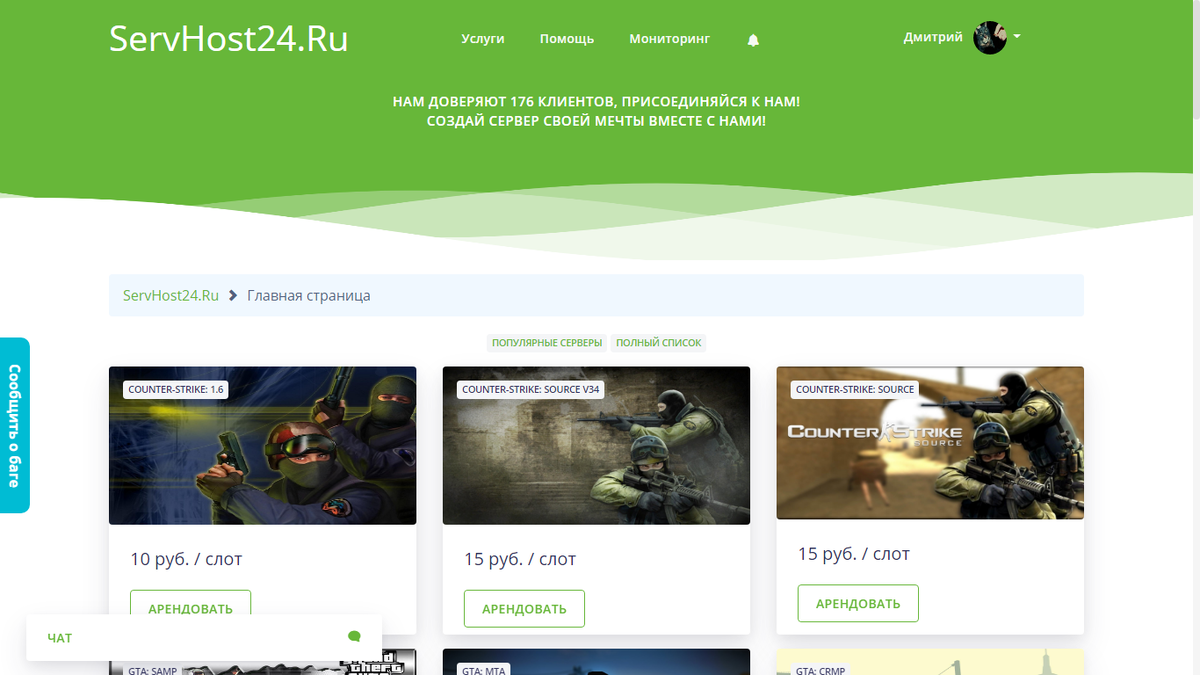 Доброго времени суток, сегодня хотел бы поделится с вами отличным хостингом игровых серверов которым пользуюсь сам лично и показать как там можно создать свой сервер за считанные копейки, а плюсом ко всему будет отзывчивая техническая поддержка, мощное оборудование и отличная скорость интернет канала до 1ГБ/с