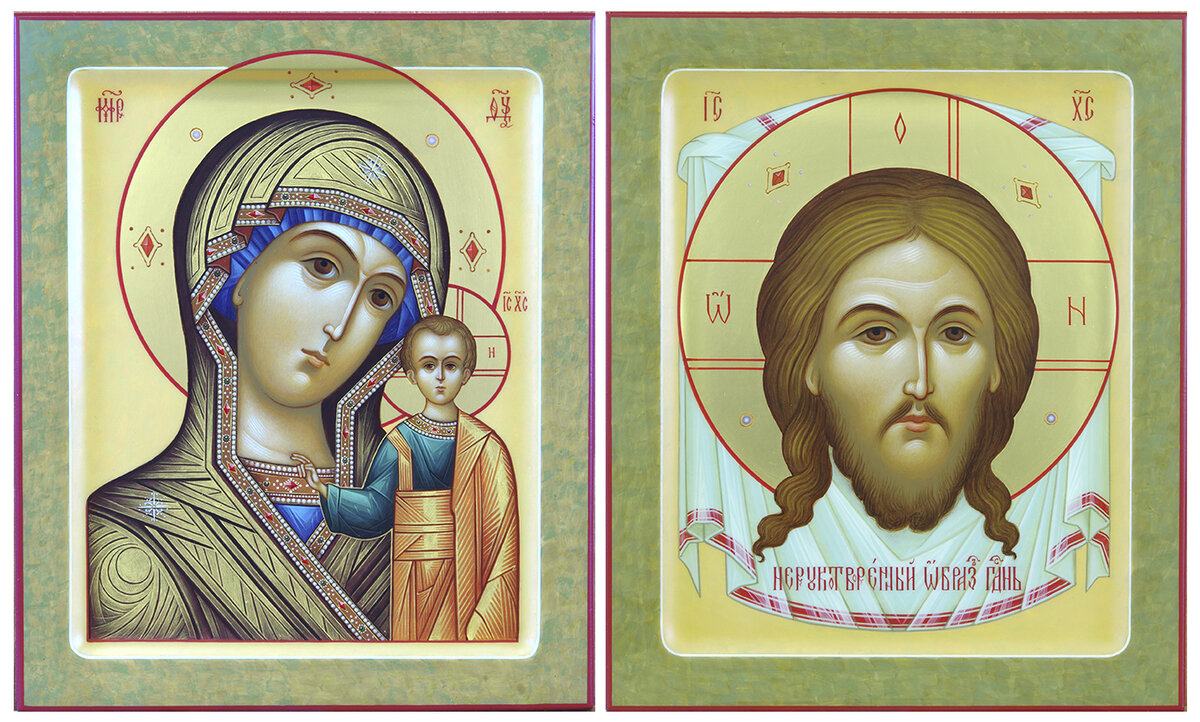 Венчальные иконы написаны художниками мастерской «Палехский Иконостас» в палехском стиле для одного из наших постоянных заказчиков. «Посему оставит человек отца и мать и прилепится к жене своей, и будут два одною плотью, так что они уже не двое, но одна плоть. Итак, что Бог сочетал, того человек да не разлучает»